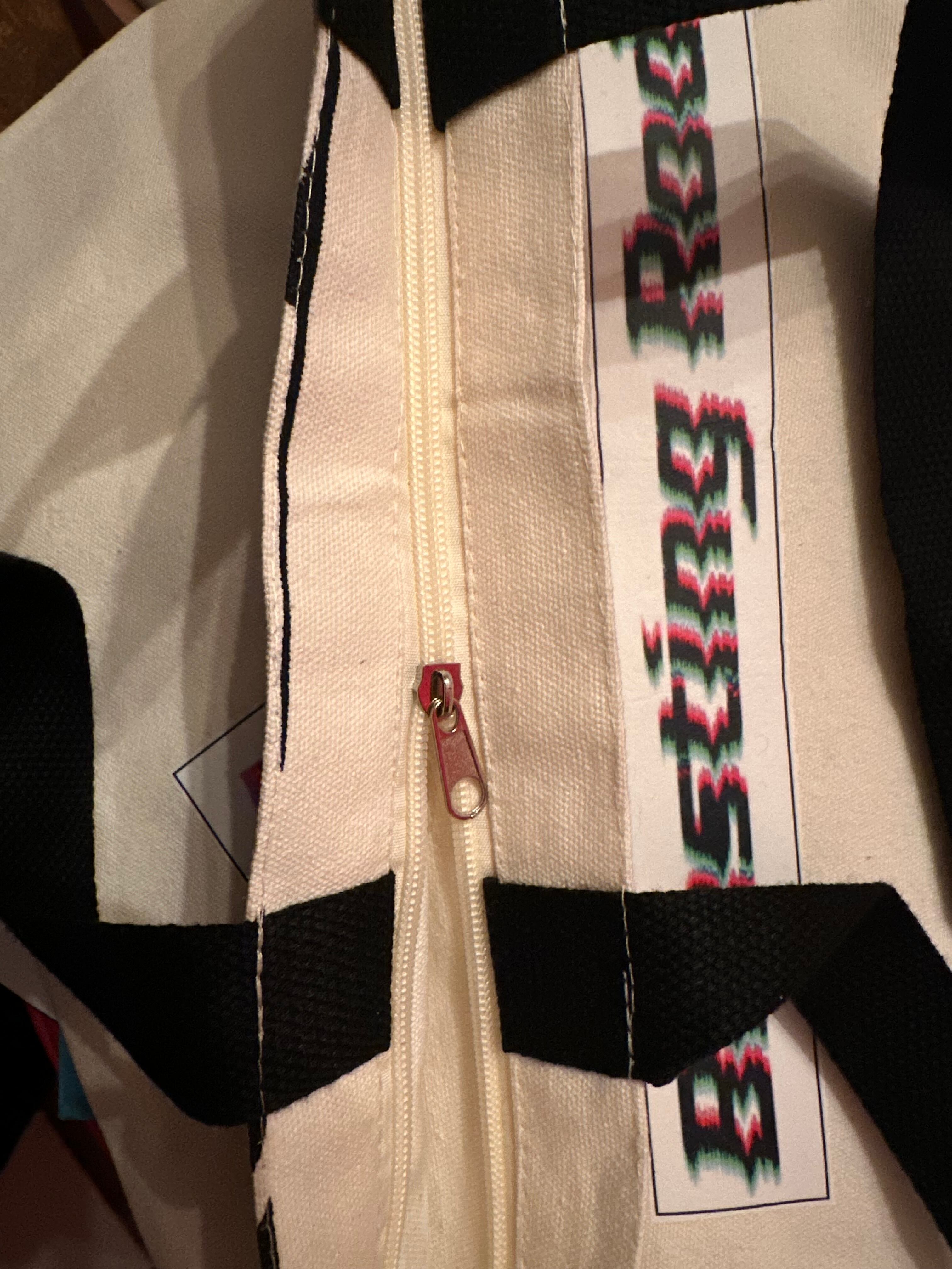 サイズ40cmx 38cm マチなし、クロージャはジッパー