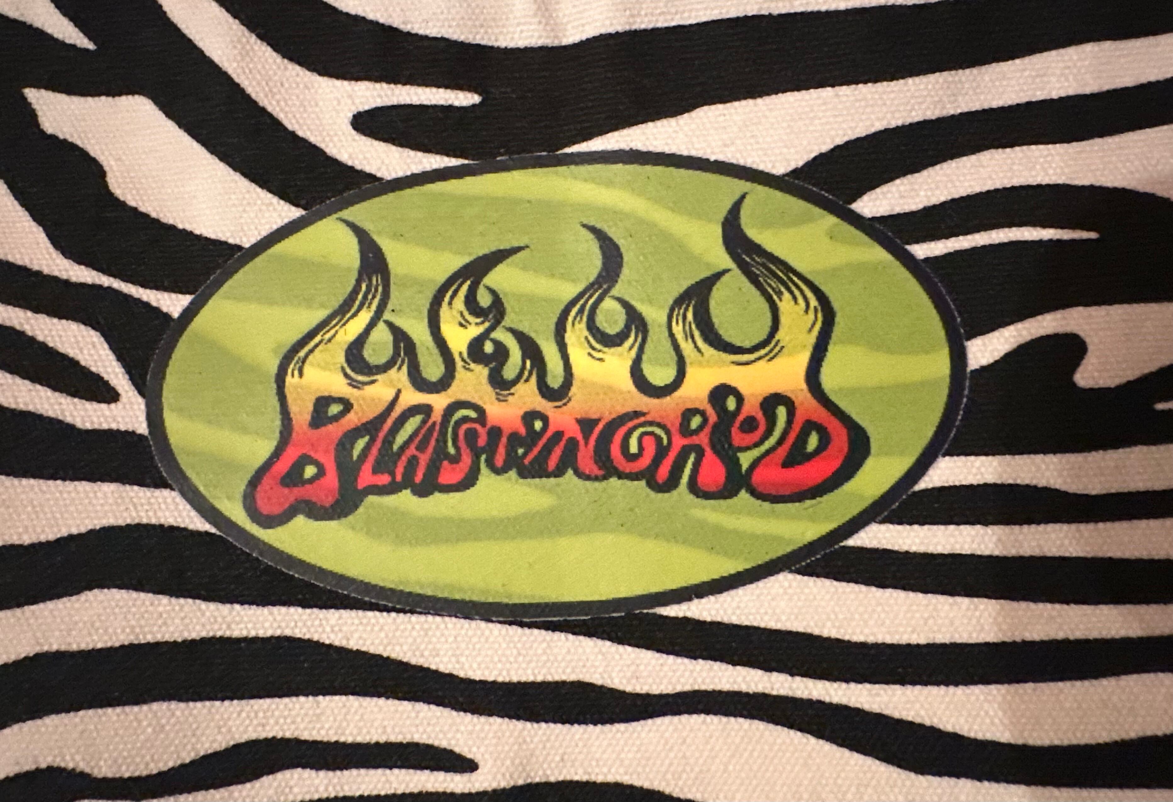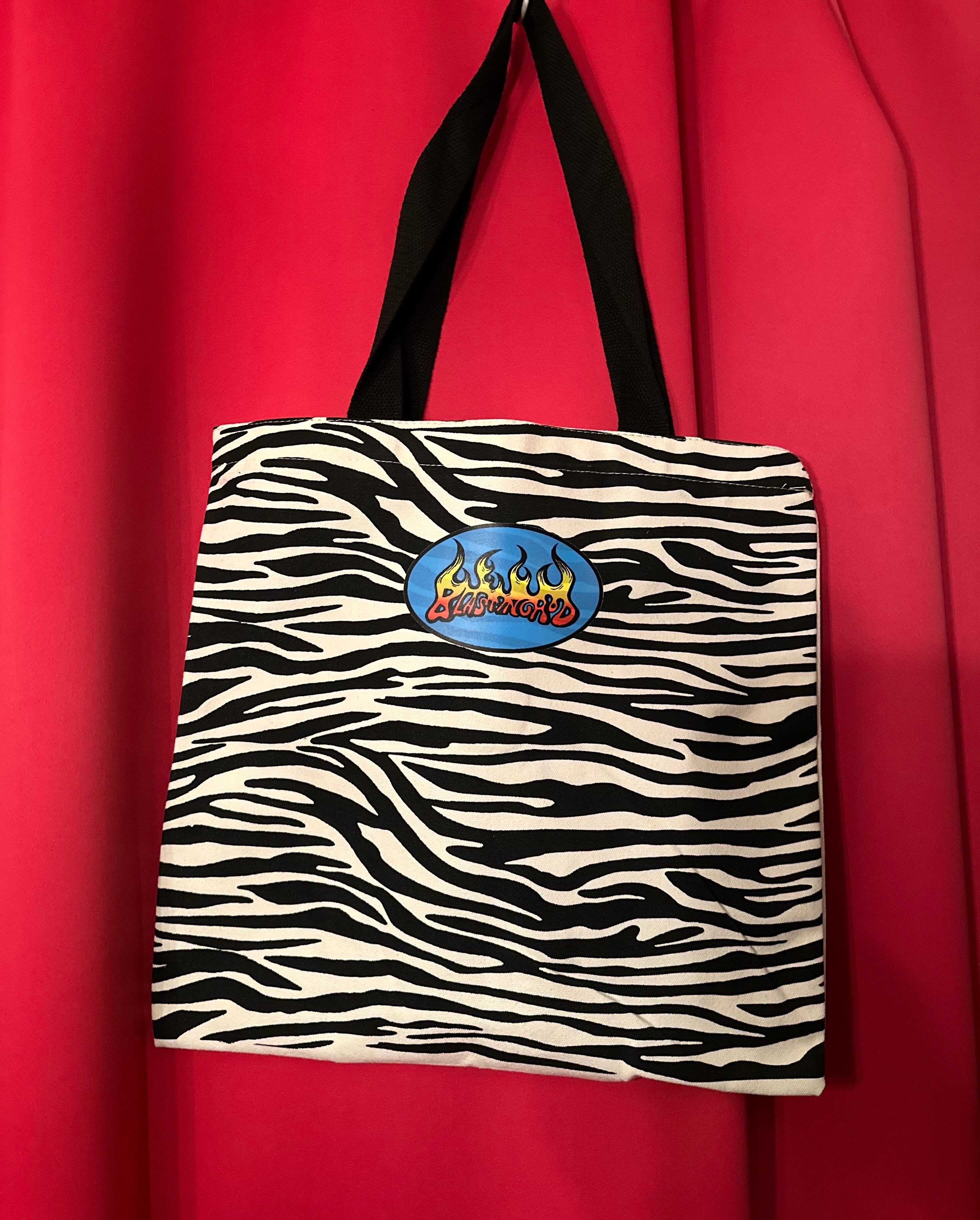 ★片面ゼブラ柄に熱転写プリントのBonfire、片面無地に熱転写プリントロゴ、キャンバス地のしっかりしたバッグです。数量限定!