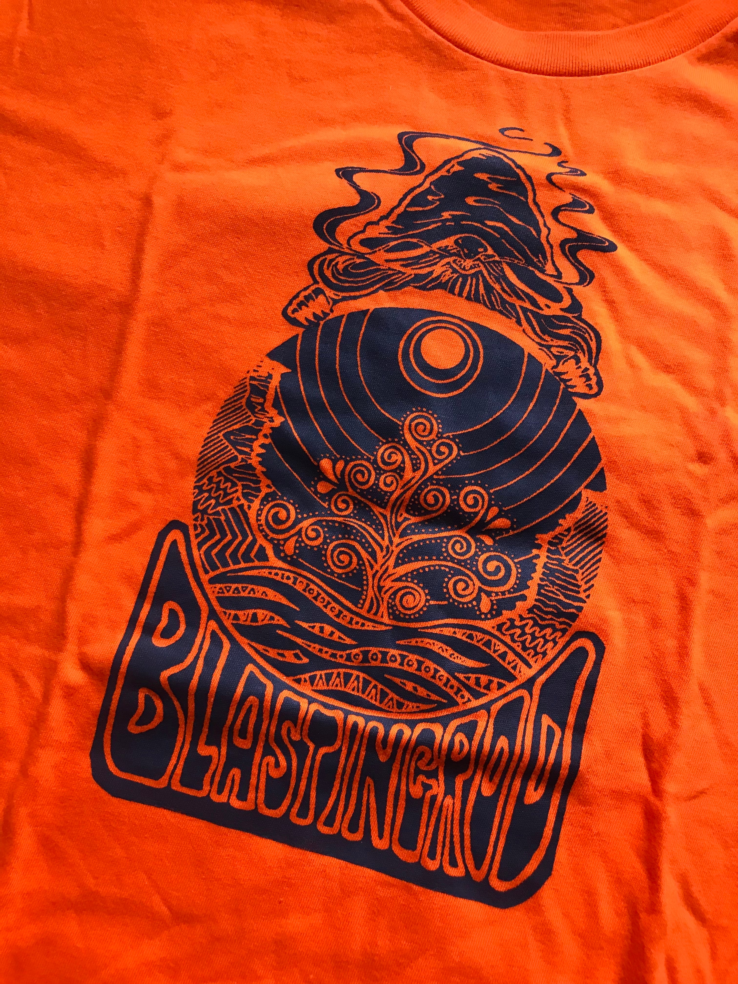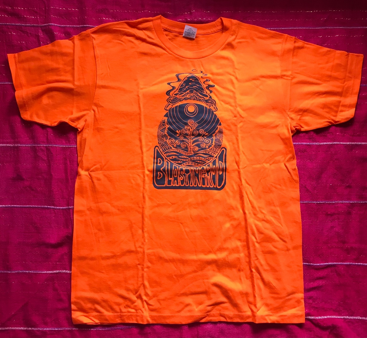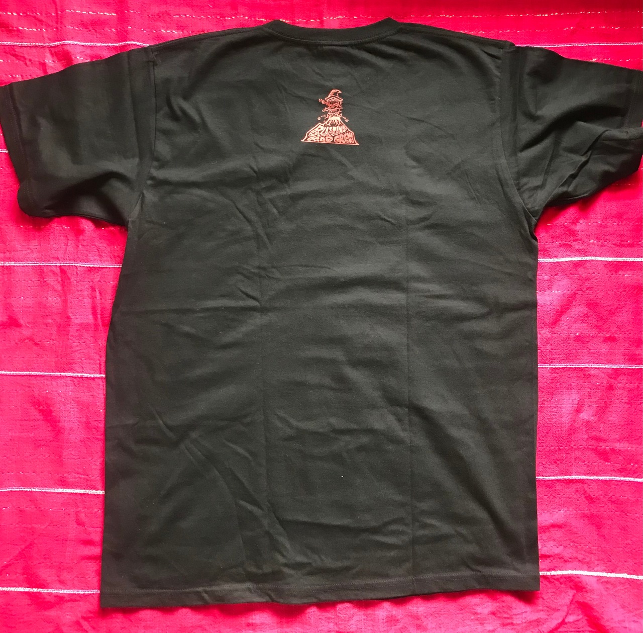 ●プリントTシャツ(ノーム付きサイケデリックトゥリー)ブラック、オレンジ