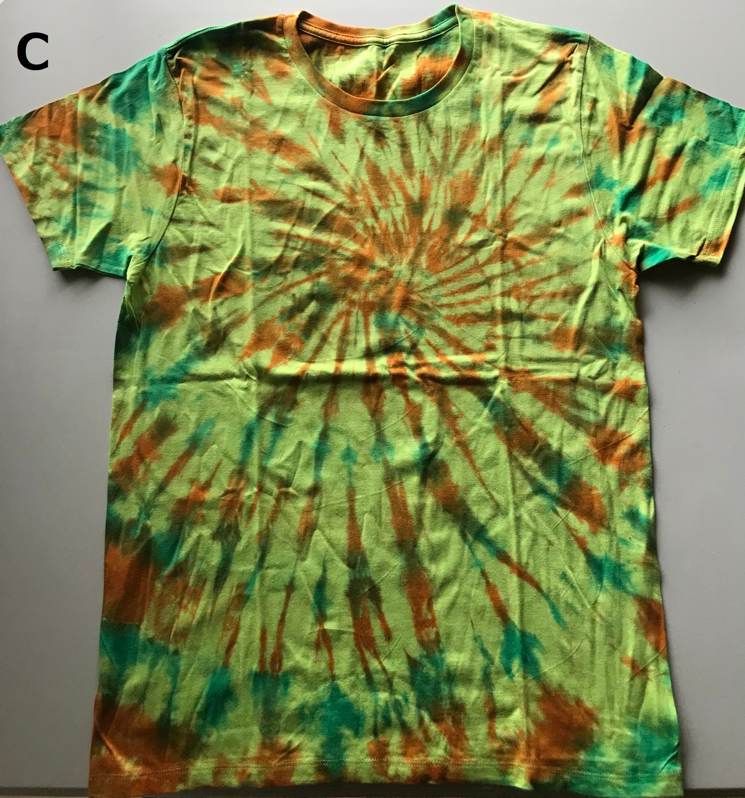 ※タイダイ染め加工のため洗いが入るのでTシャツボディにより採寸が違います